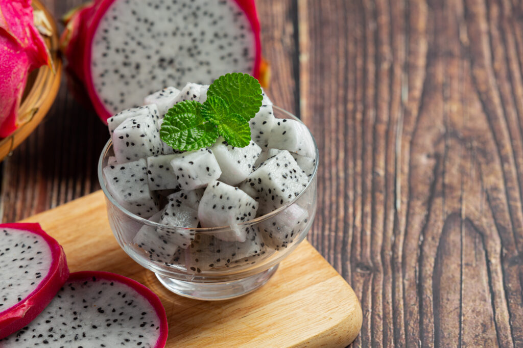 ” แก้วมังกร” ผลไม้ที่มีเนื้อสีขาว รสหวานอมเปรี้ยว อุดมไปด้วยวิตามินซี คลอโรฟิลล์ มีกากใยสูง แคลอรี่ต่ำ และแอนโทไซยานิน ช่วยให้ระบบขับถ่ายทำงานได้ดี เมล็ดของแก้วมังกรอุดมไปด้วยไขมันไม่อิ่มตัวสามารถต่อต้านปฏิกริยาอ๊อกซิเดชั่น ทานแล้วนอกจากช่วยดับกระหายดับแล้ว ยังบำรุงสุขภาพผิวพรรณสดชื่น ใช้เป็นผลไม้เสริมสุขภาพ และความงามได้เป็นอย่างดี แนะนำแช่เย็นจัดก่อนรับประทาน เพื่อความสดชื่น