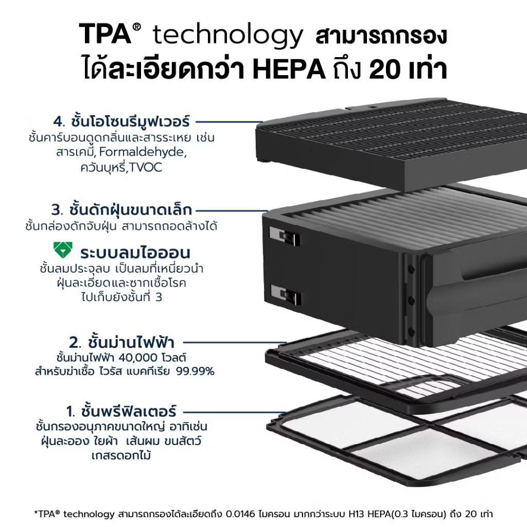 - ใช้นวัตกรรม TPA Technology เทคโนโลยีกรองอากาศโดยไม่ต้องเปลี่ยนฟิลเตอร์