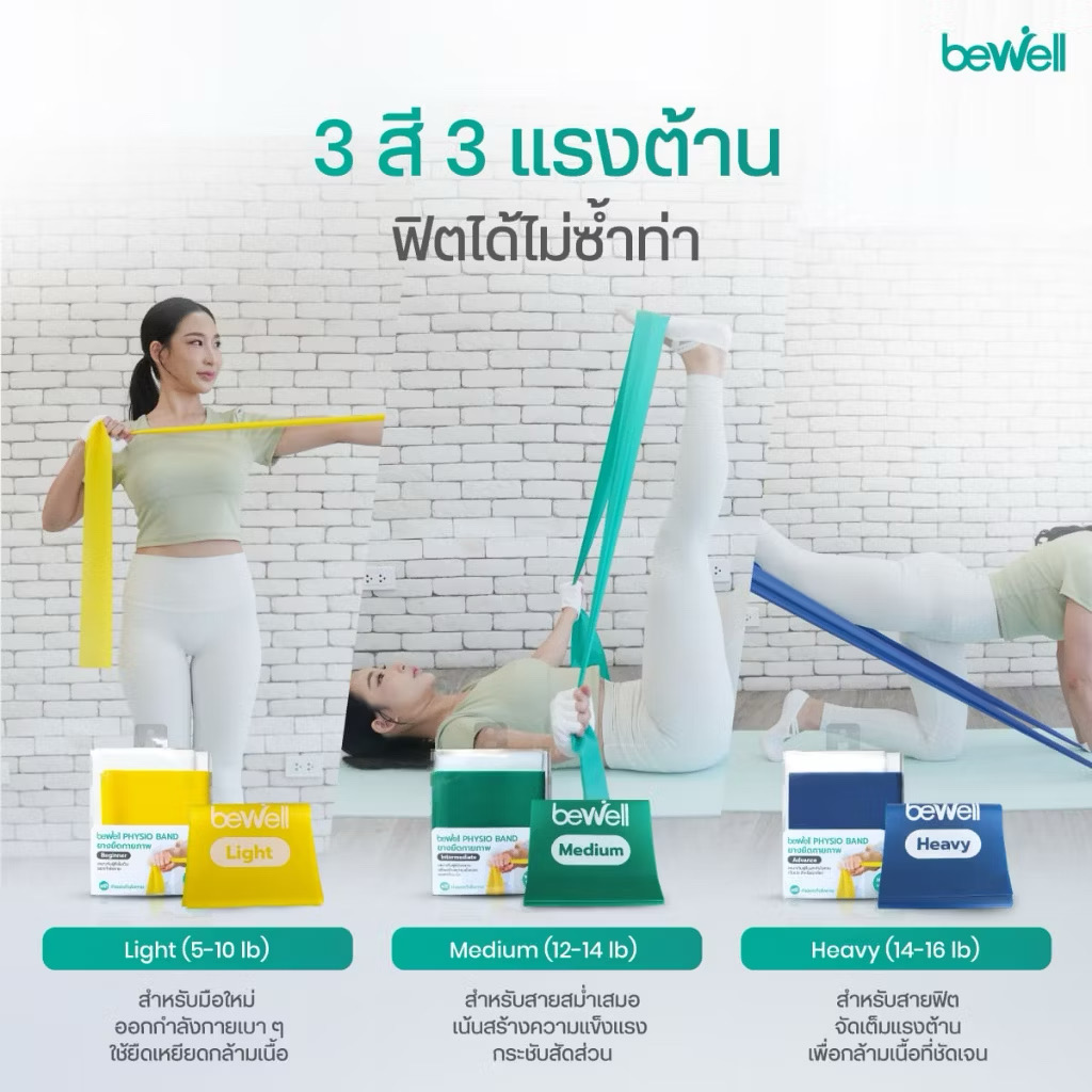 Bewell Physio Band เป็นยางยืดออกกำลังกายที่ช่วยเสริมสร้างความแข็งแรงของกล้ามเนื้อ เหมาะสำหรับการออกกำลังกายทั่วไป รวมถึงผู้สูงอายุที่ต้องการบริหารร่างกายแบบเบา ๆ เพื่อเพิ่มความยืดหยุ่นของกล้ามเนื้อ ลดอาการตึงหรือเกร็ง และช่วยให้การเคลื่อนไหวของร่างกายดีขึ้น