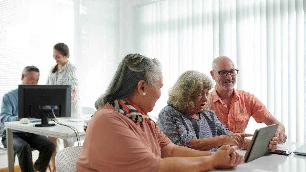 ปัจจุบันมีแพลตฟอร์มออนไลน์ที่เปิดพื้นที่ให้ผู้สูงอายุได้เข้าร่วมกลุ่มตามความสนใจ เช่น กลุ่มออกกำลังกายเบา ๆ กลุ่มอ่านหนังสือ หรือกลุ่มฝึกสมอง กิจกรรมเหล่านี้ช่วยสร้างความรู้สึกเป็นส่วนหนึ่งของสังคม ลดความรู้สึกโดดเดี่ยว และส่งเสริมการมีบทบาททางสังคมอย่างต่อเนื่อง งานวิจัยหลายฉบับชี้ว่าการมีส่วนร่วมในชุมชนออนไลน์สามารถเพิ่มการปฏิสัมพันธ์ทางสังคมและลดระดับความเหงาในผู้สูงวัยได้จริง