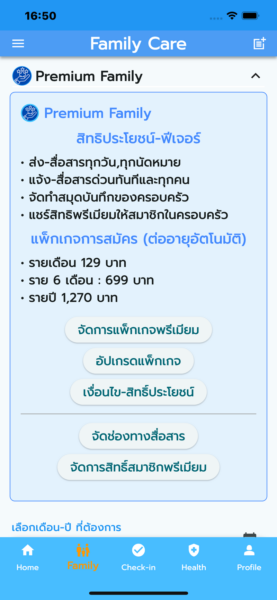 - ในหน้า Family Care จะมีหัวข้อ Premium Family หรือแถบเมนูสำหรับการสมัครสมาชิกพรีเมียม