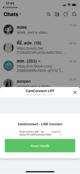 ระบบจะแสดง LINE UserID ของผู้ใช้ที่เชื่อมต่อกับ LINE @proudlycare