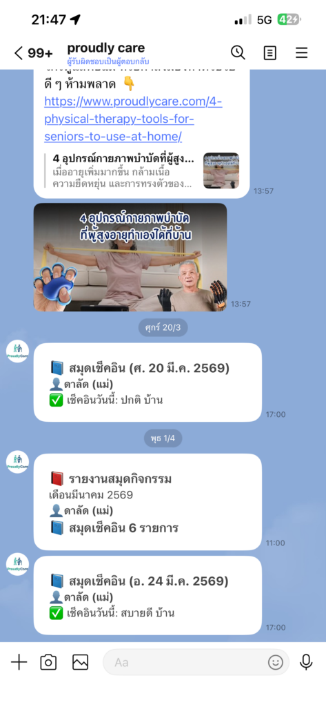 - AI Task ช่วยตอบคำถามและให้ข้อมูลการดูแลผู้สูงอายุ เชื่อมกับเว็บไซต์ www.proudlycare.com