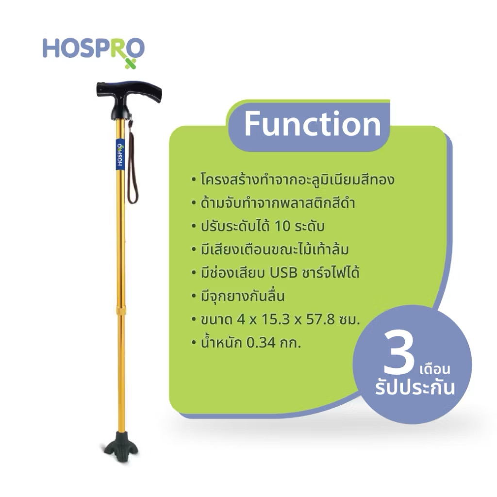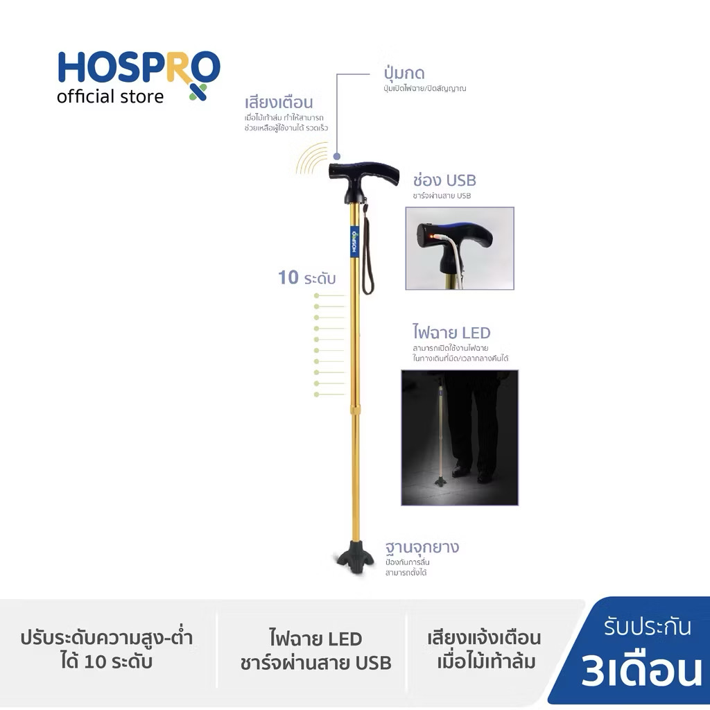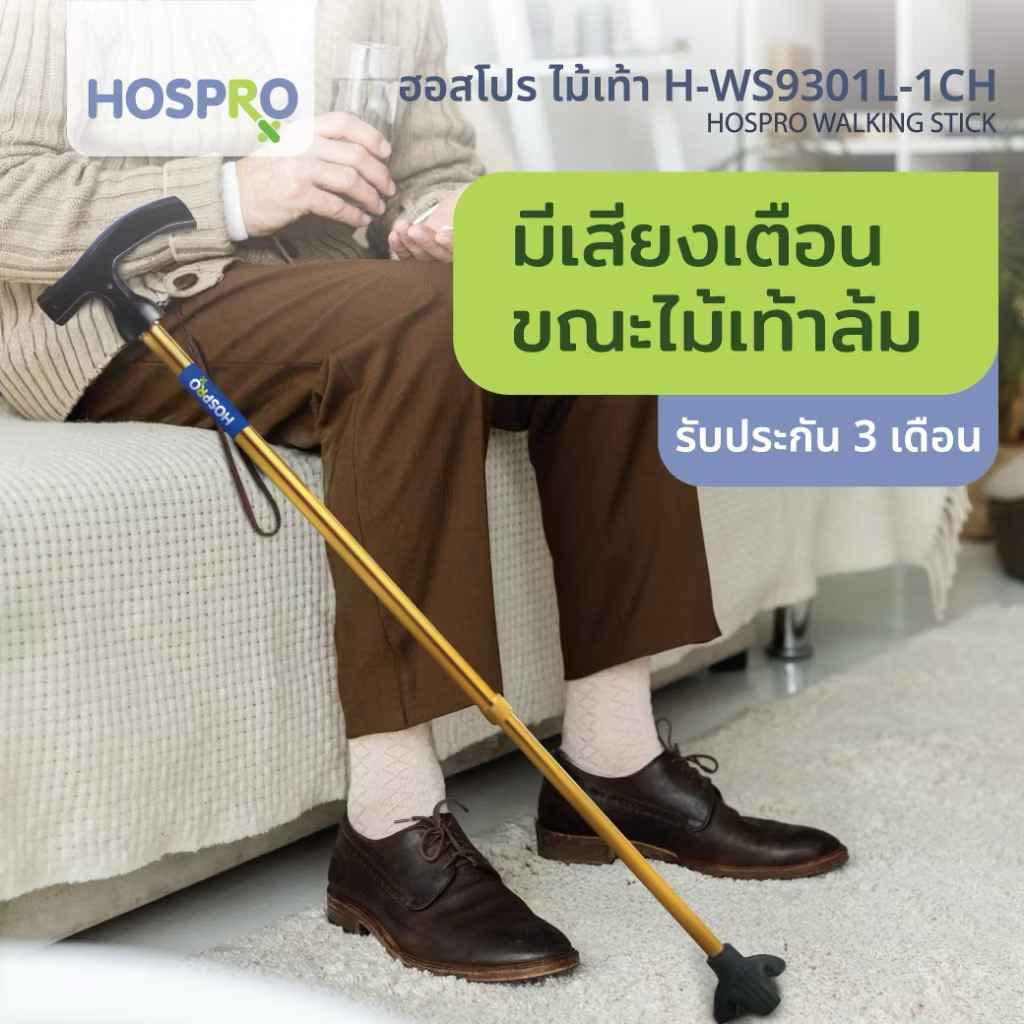 ไม้เท้าขาเดี่ยว HOSPRO รุ่น H-WS9301L-1CH ออกแบบมาเพื่อเพิ่มความปลอดภัยในการใช้งานของผู้สูงอายุและผู้ที่ต้องการอุปกรณ์ช่วยพยุงการเดิน มาพร้อมระบบแจ้งเตือนอัตโนมัติเมื่อไม้เท้าล้ม และไฟฉายในตัว ช่วยให้ใช้งานได้สะดวกในที่มืดหรือเวลากลางคืน เหมาะสำหรับการใช้งานในชีวิตประจำวันทั้งในและนอกบ้าน