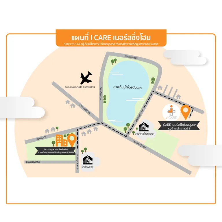 - สาขาห้วยวังนอง ไอแคร์ เนอร์สซิ่งโฮม : 318/118 บ้านค้อเหนือ หมู่ 12 ตำบลกุดลาด อำเภอเมืองอุบลราชธานี จังหวัดอุบลราชธานี 34000