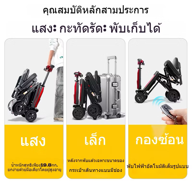 1. สกู๊ตเตอร์เคลื่อนที่รุ่นนี้ออกแบบให้กะทัดรัด ใช้งานสะดวก รองรับน้ำหนักได้ถึง 120 กก. ทำความเร็วได้สูงสุด 4.5 ไมล์ต่อชั่วโมง และวิ่งได้ประมาณ 10 ไมล์ต่อการชาร์จหนึ่งครั้ง ใช้แบตเตอรี่ 12AH 24 โวลต์ สามารถชาร์จได้ทั้งขณะเปิดหรือปิดเครื่อง