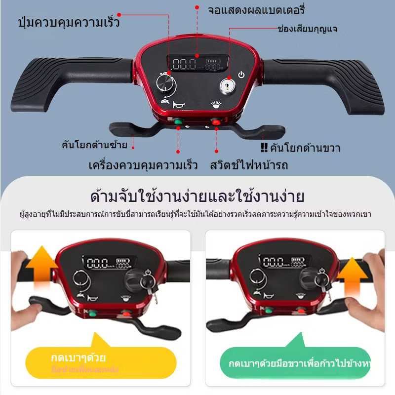 2. ที่วางแขนยื่นออกจากเบาะนั่ง สามารถปรับระดับให้เหมาะกับผู้ใช้ เพื่อเพิ่มความสบายขณะใช้งาน พร้อมไฟหน้าที่ให้แสงสว่างชัดเจน เพิ่มความปลอดภัยในการเดินทาง