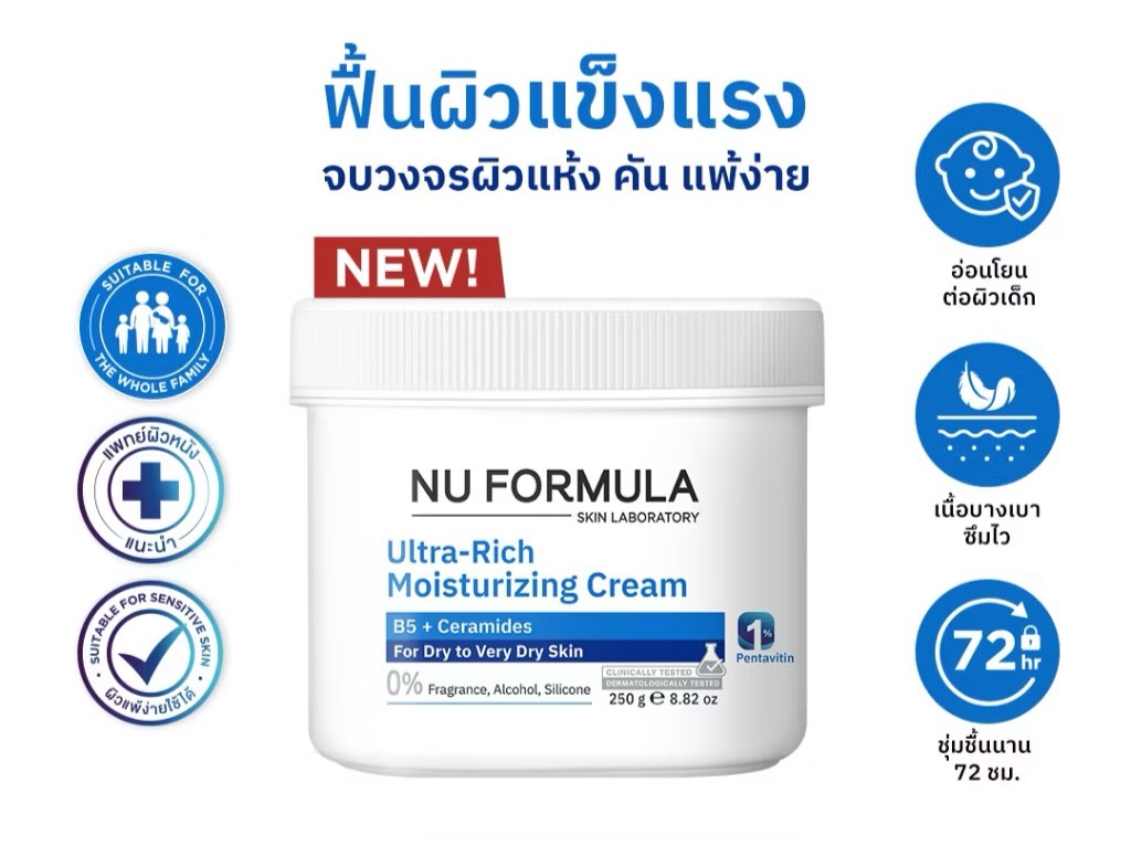 - Ultra Rich เนื้อครีมเข้มข้น ช่วยฟื้นผิวแห้งเสียทุกระดับ