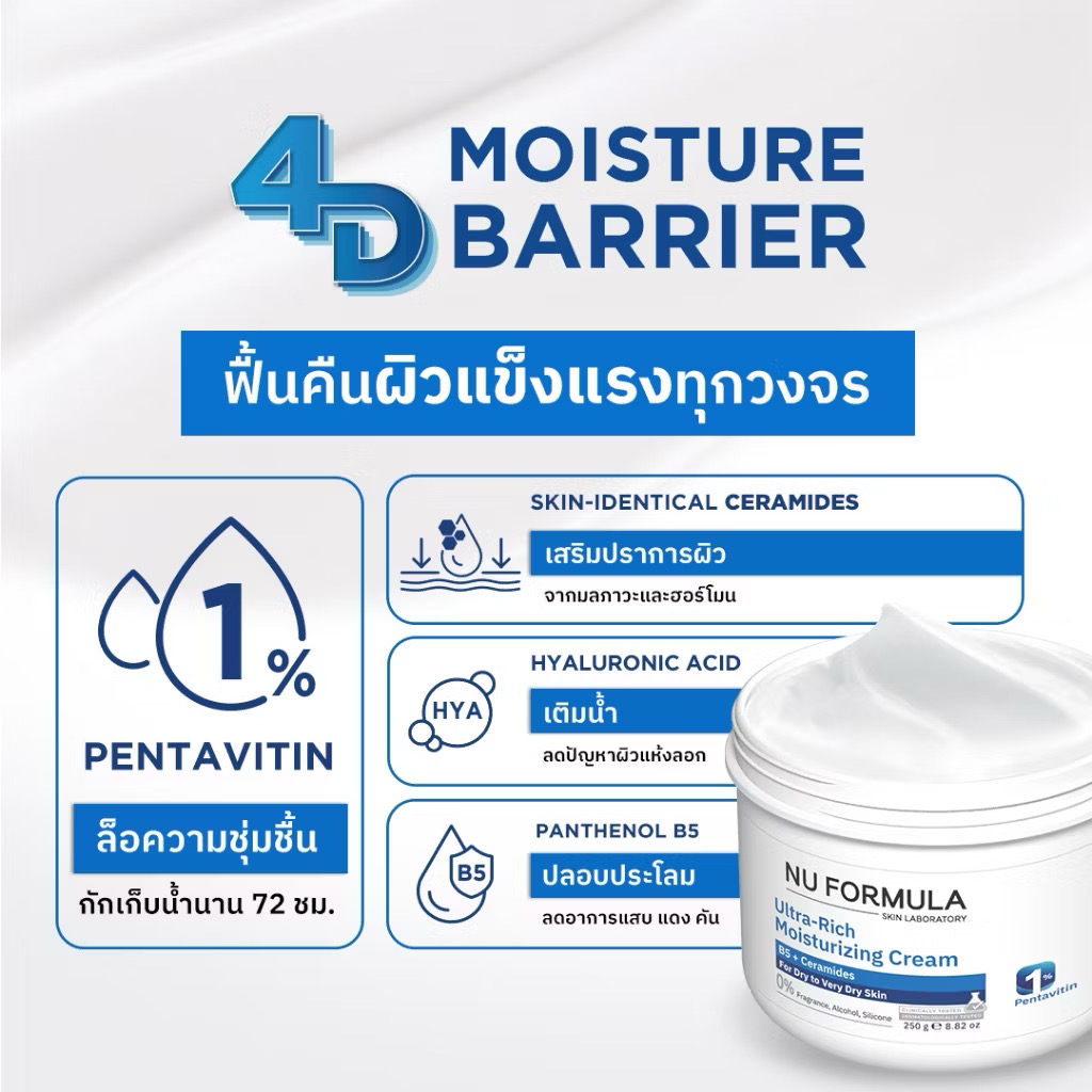 มอยซ์เจอไรซิ่งครีมเข้มข้น ที่ออกแบบมาเพื่อฟื้นบำรุงผิวแห้งและอ่อนแอโดยเฉพาะ ช่วยกู้ปราการผิวที่พังลึกถึงชั้นผิวด้วยนวัตกรรม 4D SKIN BARRIER คืนความชุ่มชื้นขั้นสุด ทำให้ผิวกลับมาเนียนนุ่ม แข็งแรง ไม่คัน ไม่ลอก แม้ผิวบอบบางของเด็กแรกเกิดก็ใช้ได้อย่างปลอดภัย