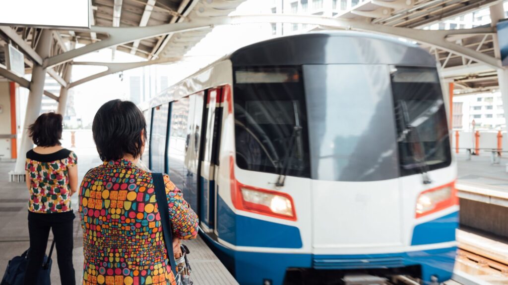 ทางเท้าที่ออกแบบมาอย่างดีไม่เพียงแต่ช่วยให้ผู้สูงอายุเดินได้สะดวก แต่ยังทำให้การเข้าถึงระบบขนส่งสาธารณะ เช่น รถไฟฟ้า BTS / MRT ง่ายขึ้นด้วย เว็บไซต์ Accessibility Is Freedom ระบุถึงการติดตั้งลิฟต์และสิ่งอำนวยความสะดวกพื้นฐานบนระบบรถไฟฟ้า เพื่อให้ผู้สูงอายุและผู้ใช้ไม้เท้าสามารถขึ้น-ลงได้ปลอดภัย โดยไม่ต้องกังวลเรื่องขั้นบันไดสูงหรือช่องว่างในการก้าว